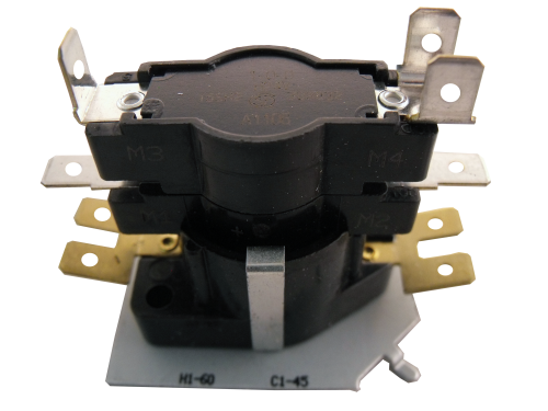 Q Series Sequencer, field proven for controlling the operation of heating elements and/or blower motors in electric, gas or oil heat systems. This sequencer has 2 switches & turns on at 1-60 and off at 1-45 seconds.