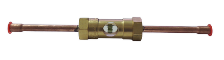 The Allin Liquid Eye®moisture reactor is easy to read in minimal light. It provides a quick indication of refrigerant in the tube, as well as the pressure of the moisture. When moistrure is present, the color bars on the band within the tube change co