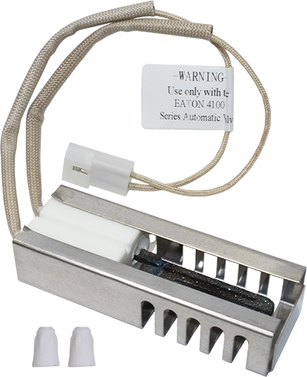 This igniter can be used as a replacement in some Whirlpool® models and other modern gas oven burners. It draws an electric current causing the bimetal to bend, heat to a high temperature, and open the safety valve releasing the gas for ignition.