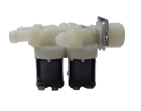 Washer cold water inlet valve. Standard hose fitting inlet, 1 water outlet. The water inlet valve opens to allow water to enter the washing machine.